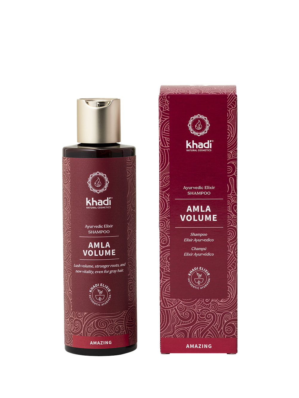 Son secret réside dans l’Élixir Amla Volume, un extrait de 14 plantes Ayurvédiques – dont Amla, Bhringaraj, Brahmi, Tulsi, Aloe Vera et Shikakai – préparé selon la tradition.