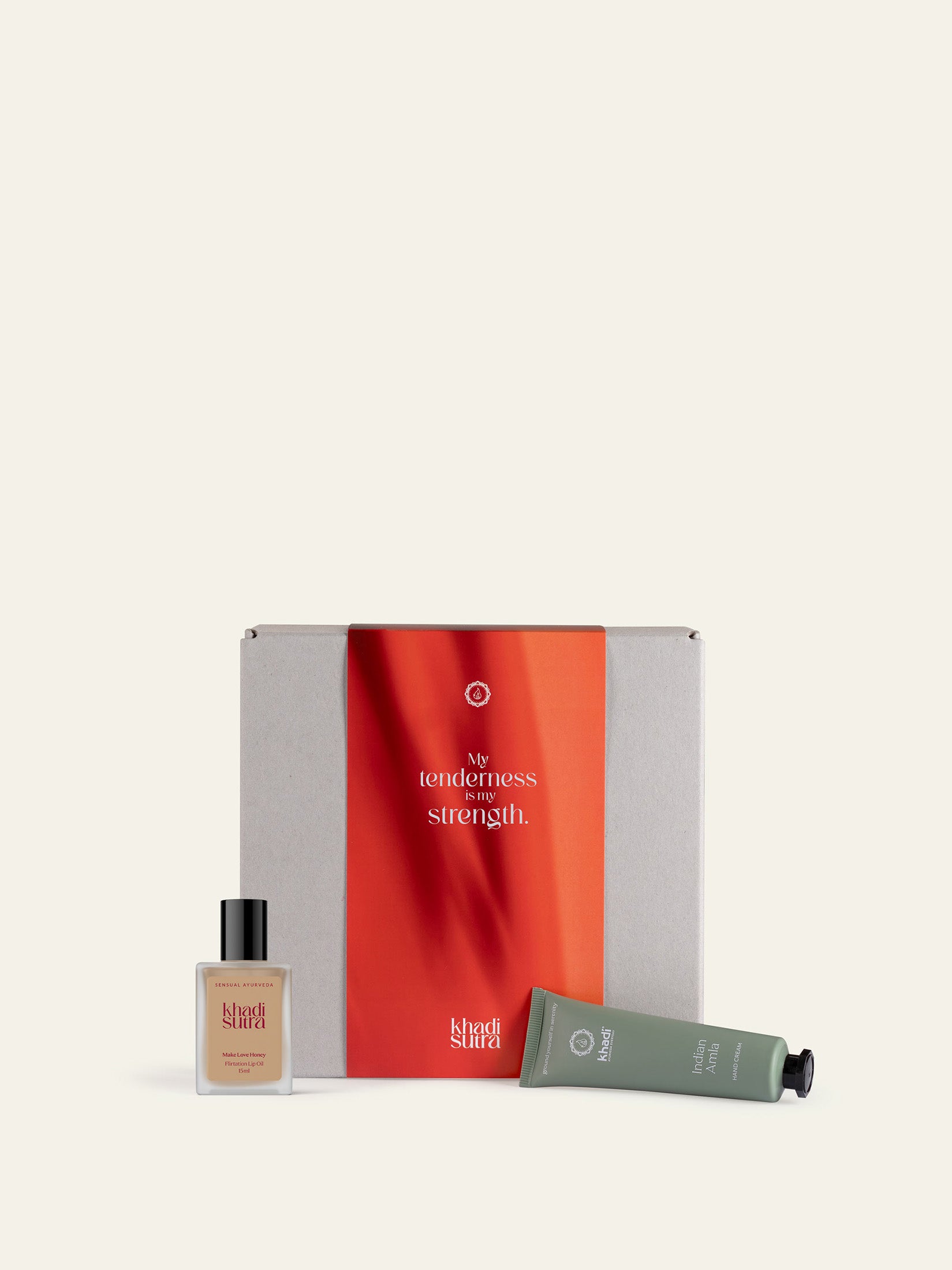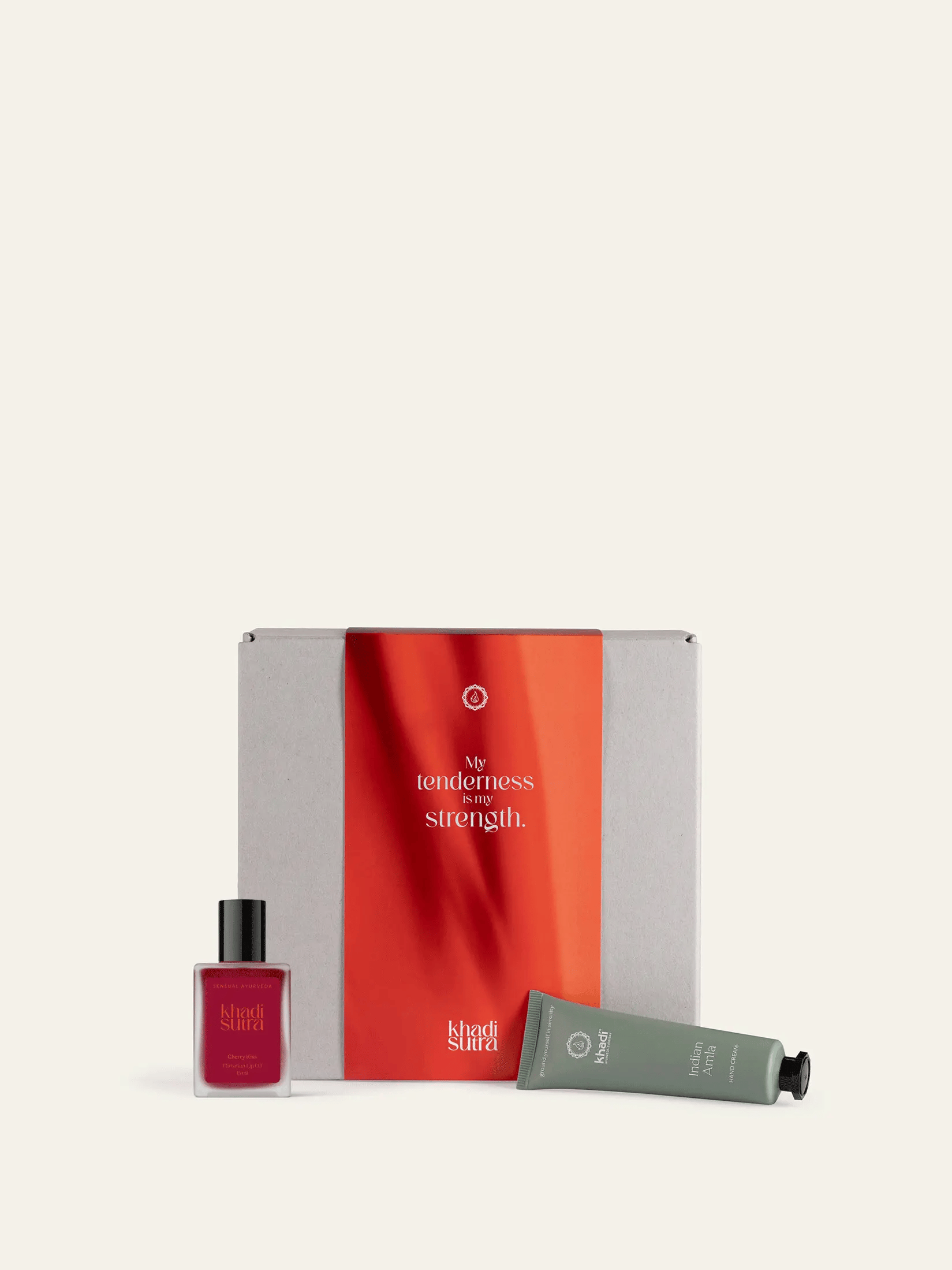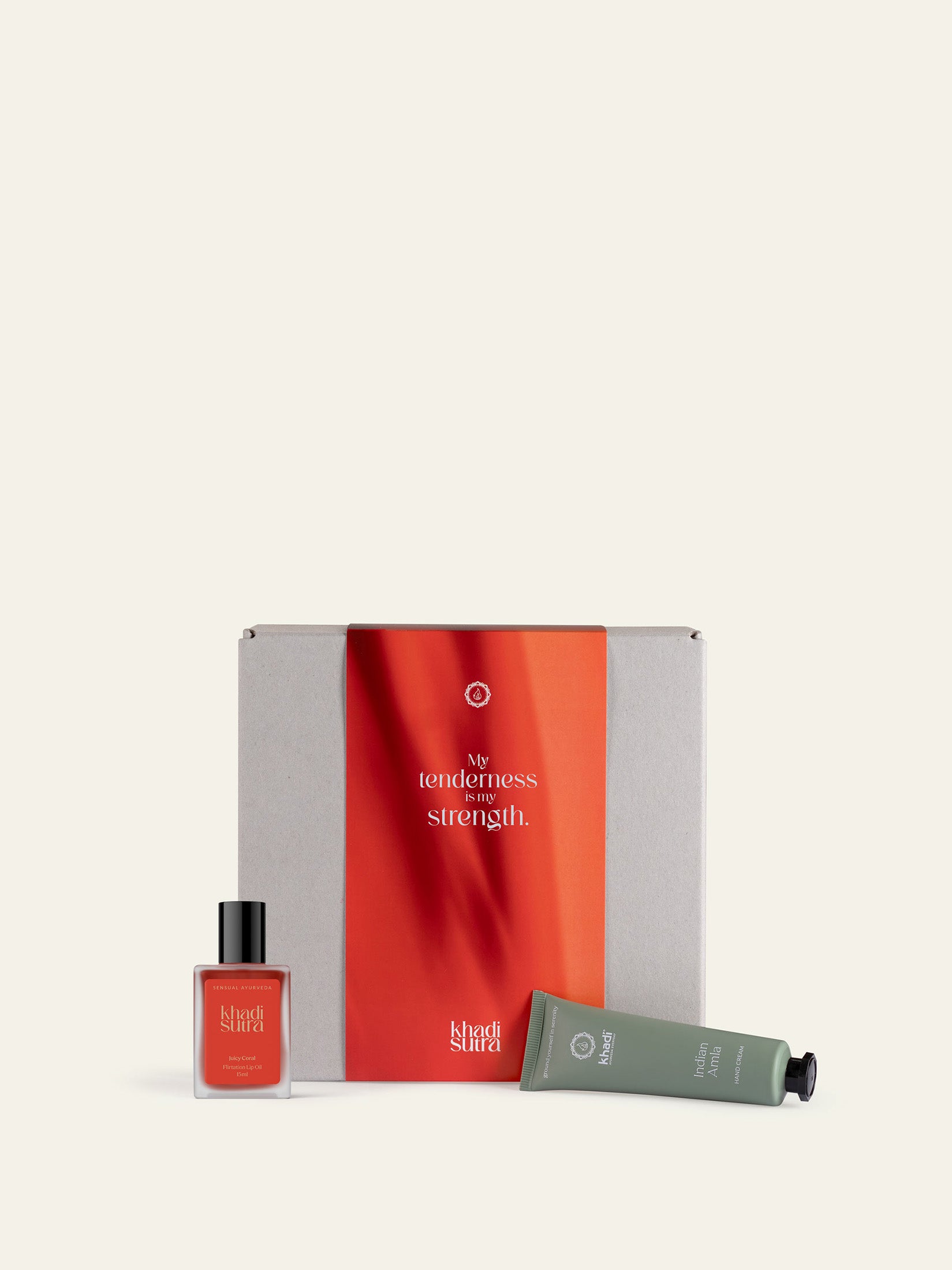 Ressentez la douce tension d’un instant prêt à s’intensifier : le coffret Love to Love You associe la Crème Mains Nourrissante Indian Amla à une Huile à Lèvres Teintée khadi SUTRA dans votre couleur préférée — pour des moments empreints de sensualité et d’anticipation.