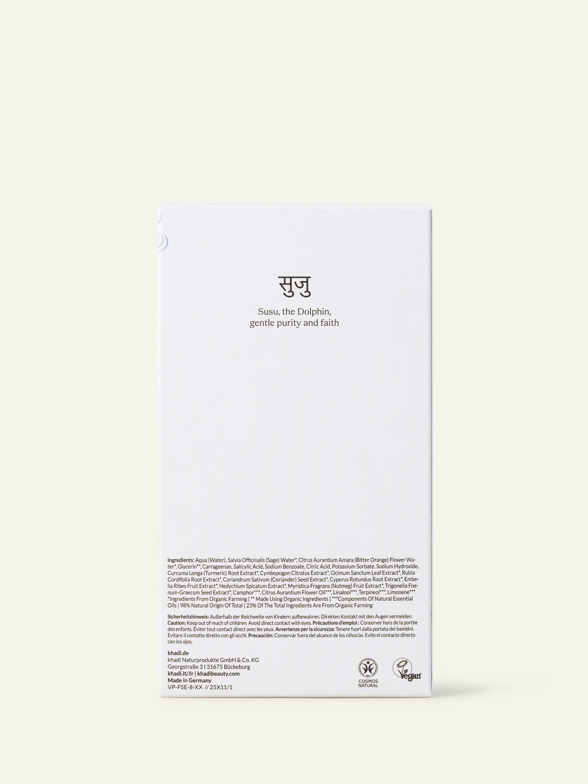 Comme tous les produits khadi, la Lotion Tonique Purifiante Susu Pure et le Sérum Visage Purifiant Susu Pure sont 100 % naturels, végans et exempts d'additifs synthétiques.